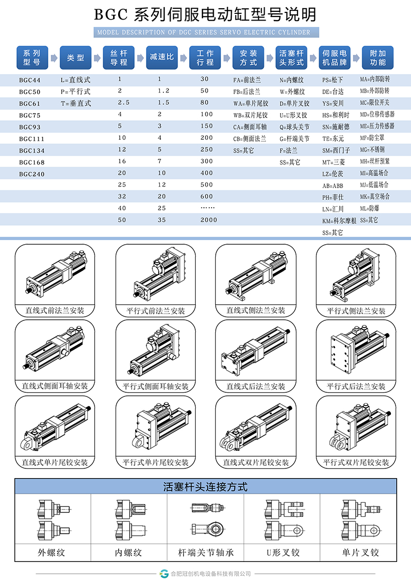 3、传动方式:滚珠丝杆、滚柱丝杆 、梯形螺杆